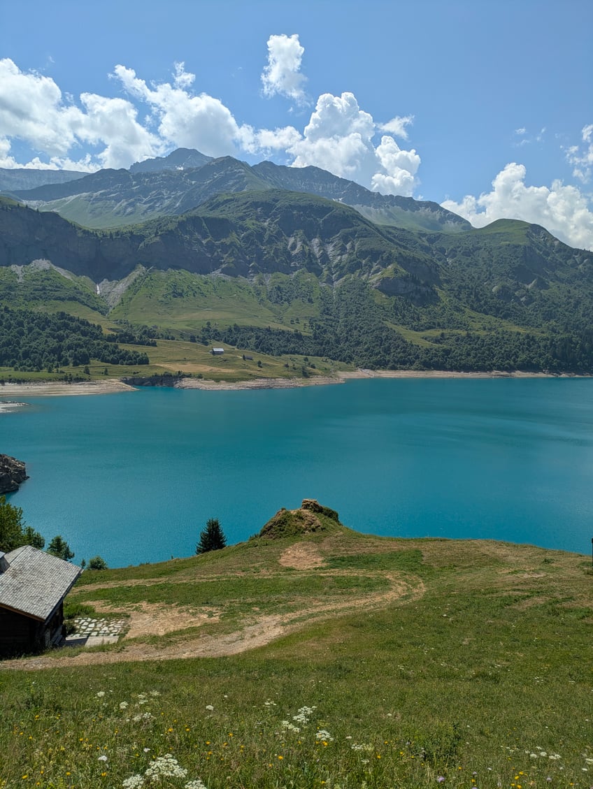 Et quelle récompense ! Dès l'arrivée au lac de Roselend, le paysage s'est dévoilé dans toute sa splendeur. Le lac, d'un bleu magnifique, entouré de montagnes majestueuses, m'a coupé le souffle. J'ai pris le temps d'observer, de profiter pleinement de ce moment.