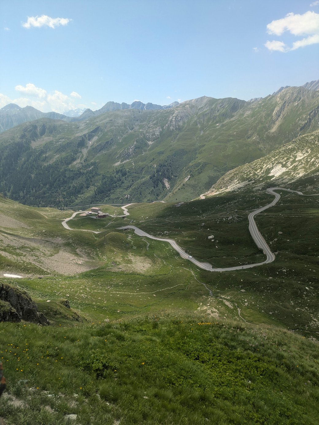 Après un long moment, la route s'est enfin séparée : les camions ont pris le tunnel, tandis que je continuais ma route vers le col. Les paysages sont devenus majestueux, et malgré la chaleur, j'ai continué de profiter, de me dire que j'avais de la chance d'être là, de vivre cette expérience unique !